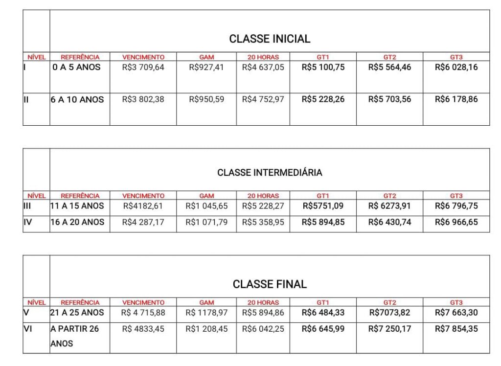 Acesse o PDF da Tabela dos Professores 20 horas pelo link: Tabela 20H